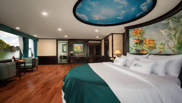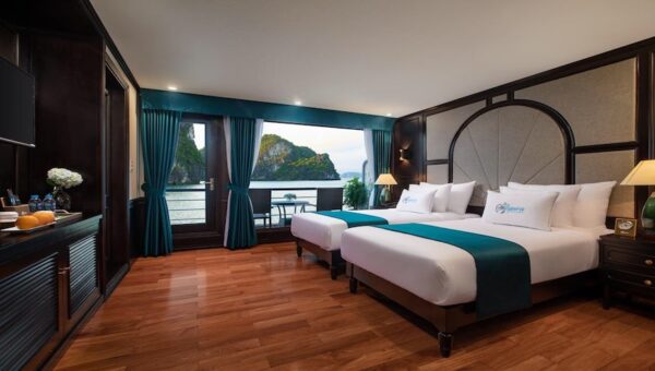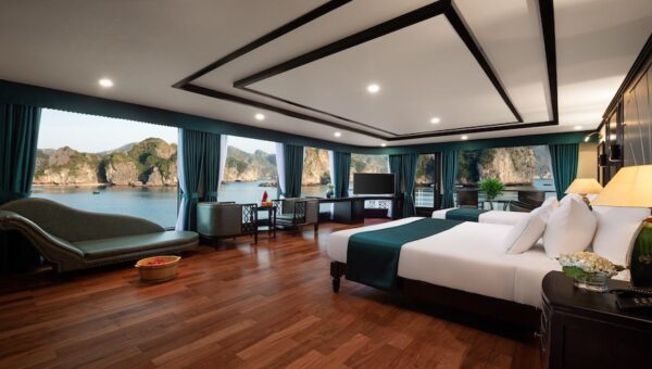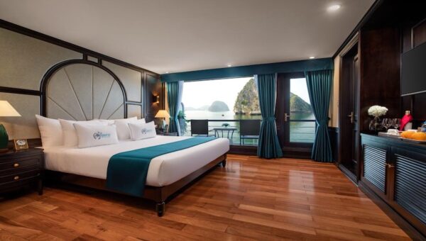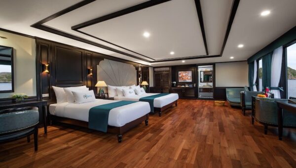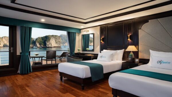 Aspira Cruise is a modern 5-star luxury overnight cruise (launched in 2022) operating in Halong Bay and the quieter Lan Ha Bay extension, known for its elegant design, spacious accommodations, and less-crowded itineraries that avoid heavy tourist areas. Operated by a reputable Vietnamese company, it offers a perfect blend of comfort, relaxation, and adventure in Vietnam’s UNESCO-listed wonder, with special attention to unique offerings like Halal and Kosher meals (rare among Halong cruises).
