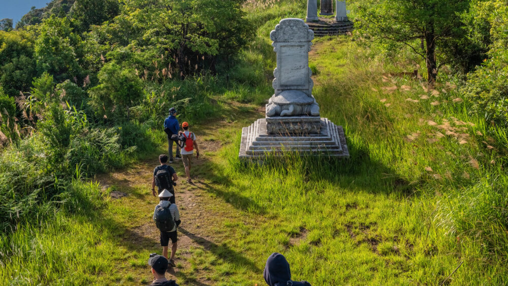 Continue upward to Hai Vong Dai – the highest point of the tour and the park’s most iconic viewpoint. Standing at 1,448m, you’ll be rewarded with a jaw-dropping 360° panorama: rolling mountains, drifting clouds, the sparkling East Sea, Cau Hai Lagoon, Tam Giang Lagoon, and on clear days, the beaches of Canh Duong. This is also one of the best sunset spots in central Vietnam – watch the sky explode in golden, pink, and purple hues as the sun dips behind the mountains.