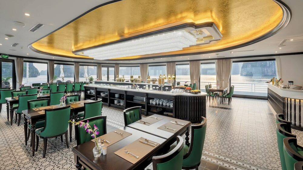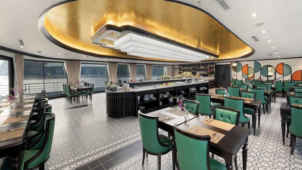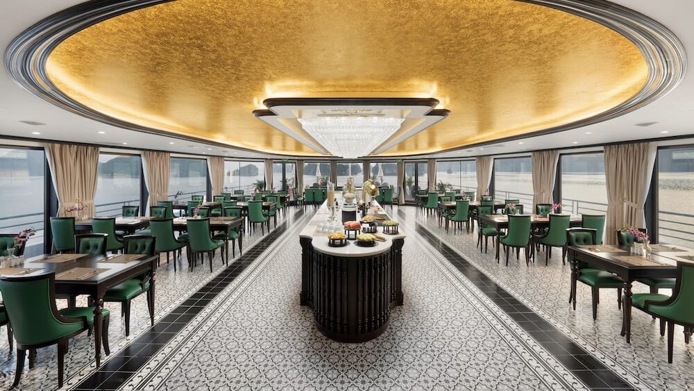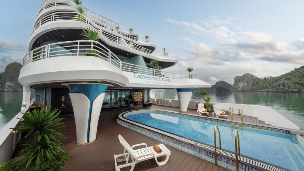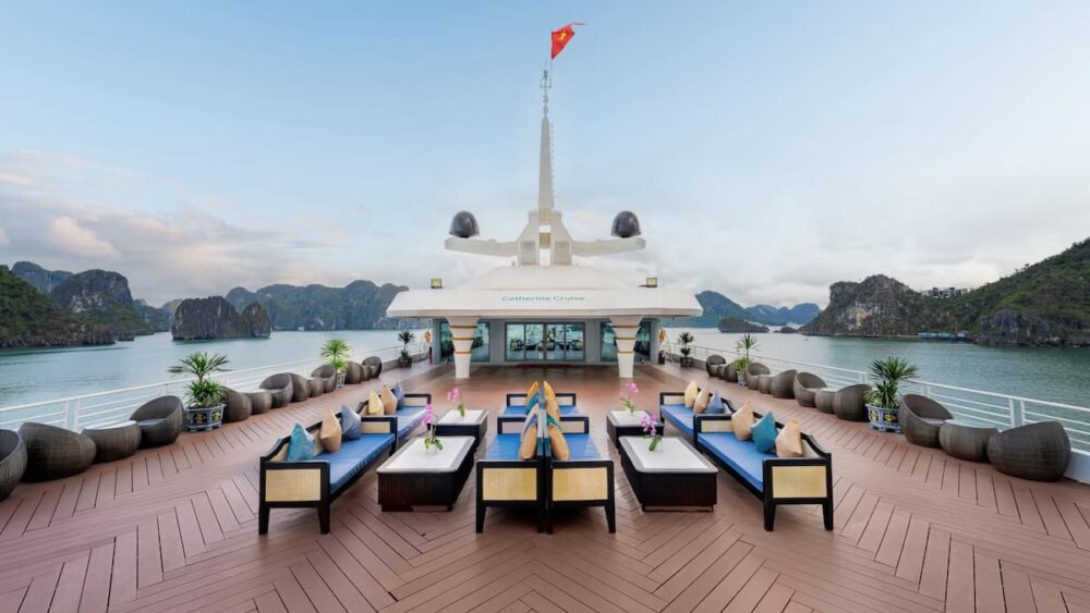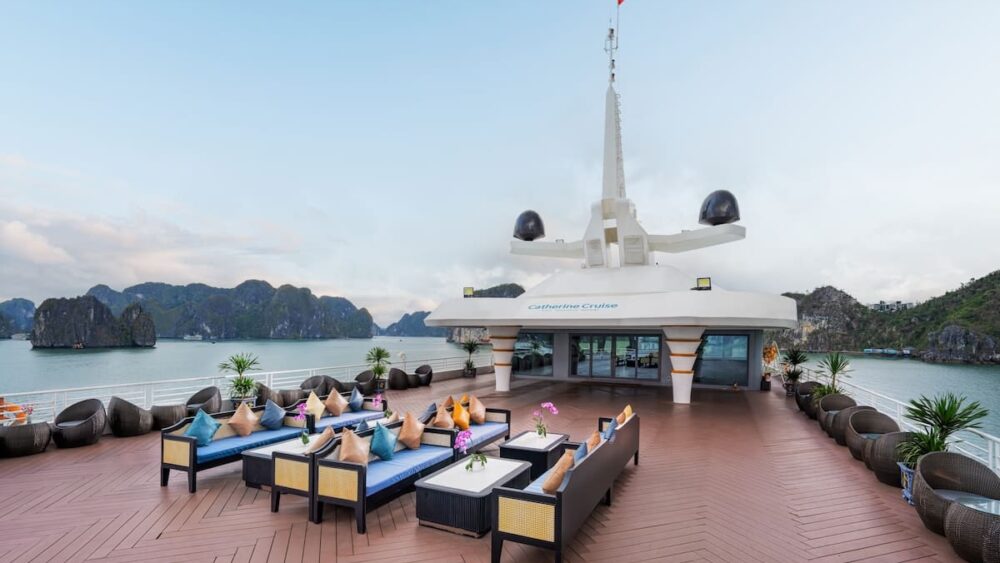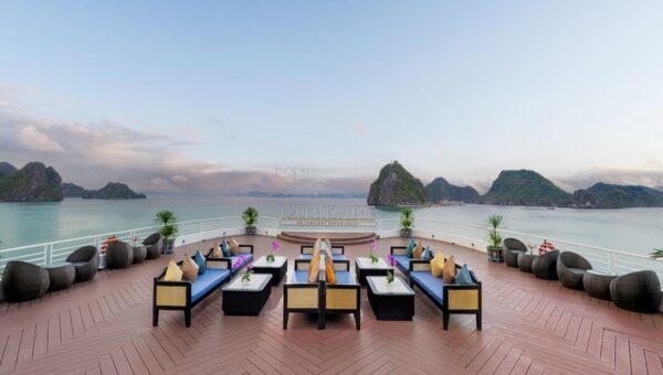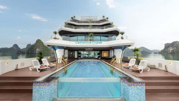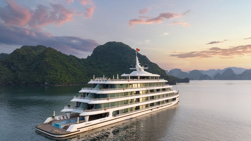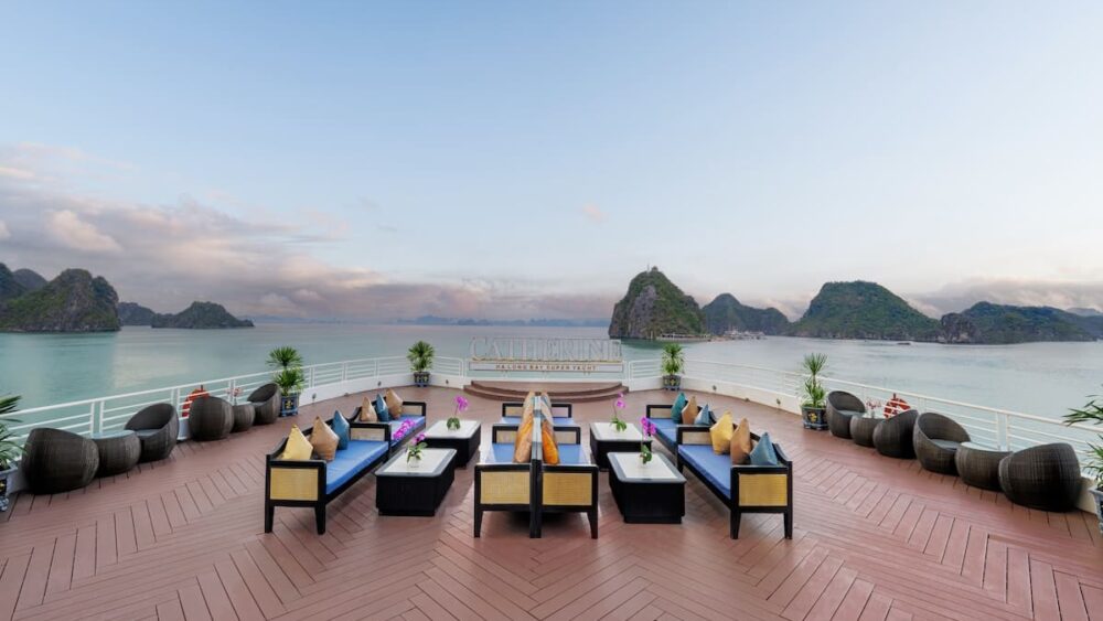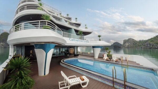 Description: Experience the epitome of Indochine elegance and 6-star sophistication aboard Catherine Cruise. As one of the most luxurious vessels in Halong Bay, Catherine seamlessly blends timeless French colonial charm with modern-day opulence. Designed for travelers who demand space and serenity, the cruise offers expansive suites, world-class amenities, and a commitment to impeccable service, making every voyage through the limestone karsts a truly regal escape.
