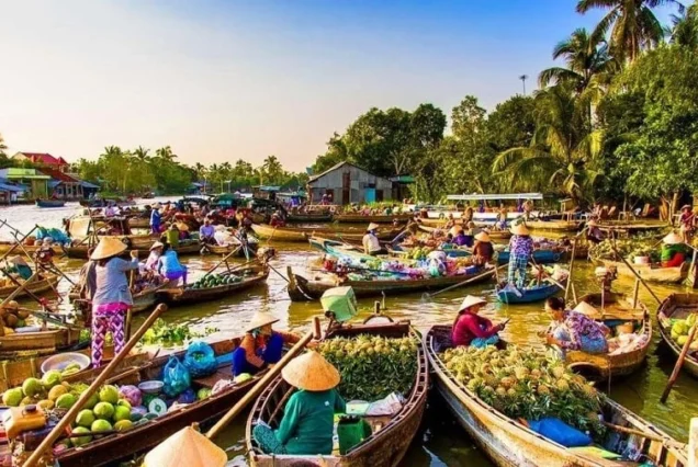 • Hundreds of boats full of pineapples, mangoes, and smiling traders – sip Vietnamese coffee while floating among them!