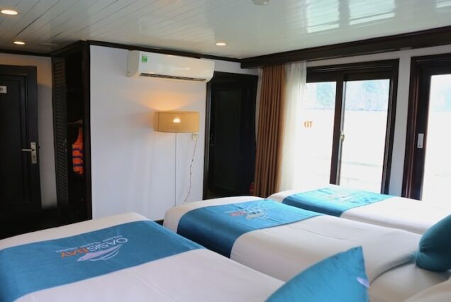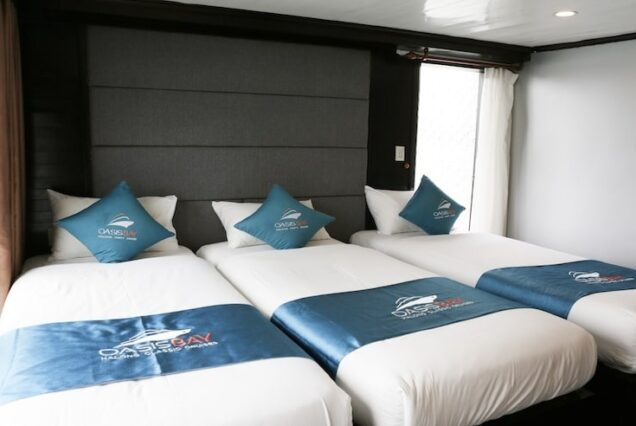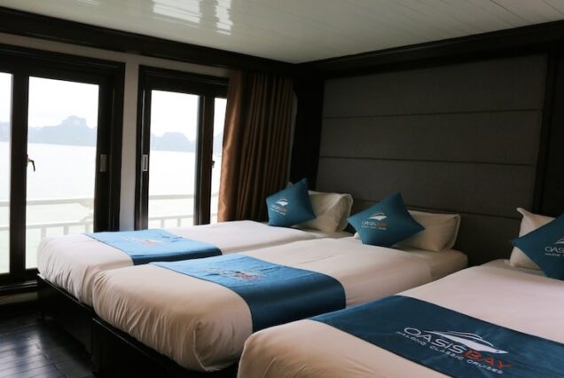 All suites and cabins in Oasis Bay Cruise are designed following the international 4-star standards. Featuring the area of 16 – 26 square meters, the suites and cabins are suitable for both individuals but families and groups of friends. Along with contemporary facilities, Oasis Bay has a professional team of young, hospitable, and passionate staff who are always happy to serve you.