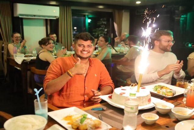 While Oasis Bay Cruise sets sail to beautiful attractions, a special lunch will be catered to warmly welcome you. In the afternoon, you have access to the most tranquil area of Halong Bay for kayaking and swimming. You can also have fun with your fellow travelers on the giant trampoline or dip in the jacuzzi arranged around the cruise. Back to the ship to relax on the sundeck, enjoy a sunset party with Happy Hour Buy 2 get 1 drink free.