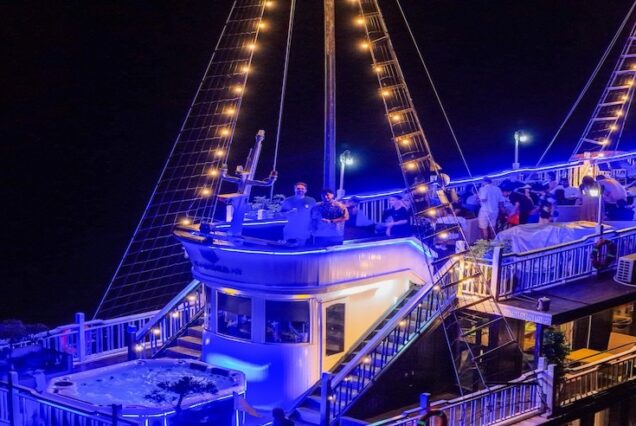 At 7:00 p.m., let your taste buds be woken by sampling a gourmet dinner! The rest time in the evening is for your leisure time. You can dance, play games, or enjoy your drinks from the bar and socialize with other passengers. The bar is open until 1:45 am.