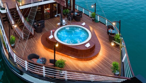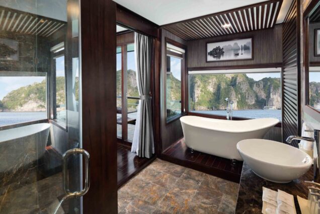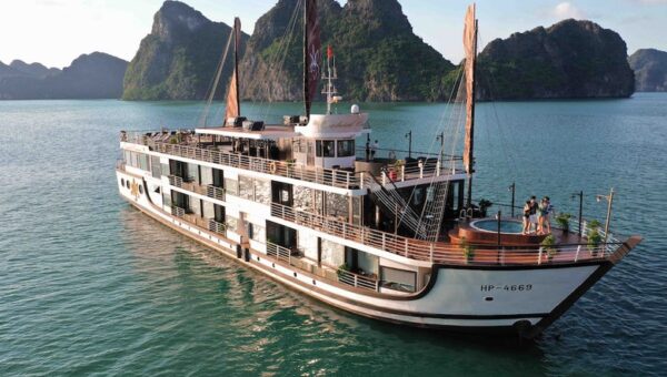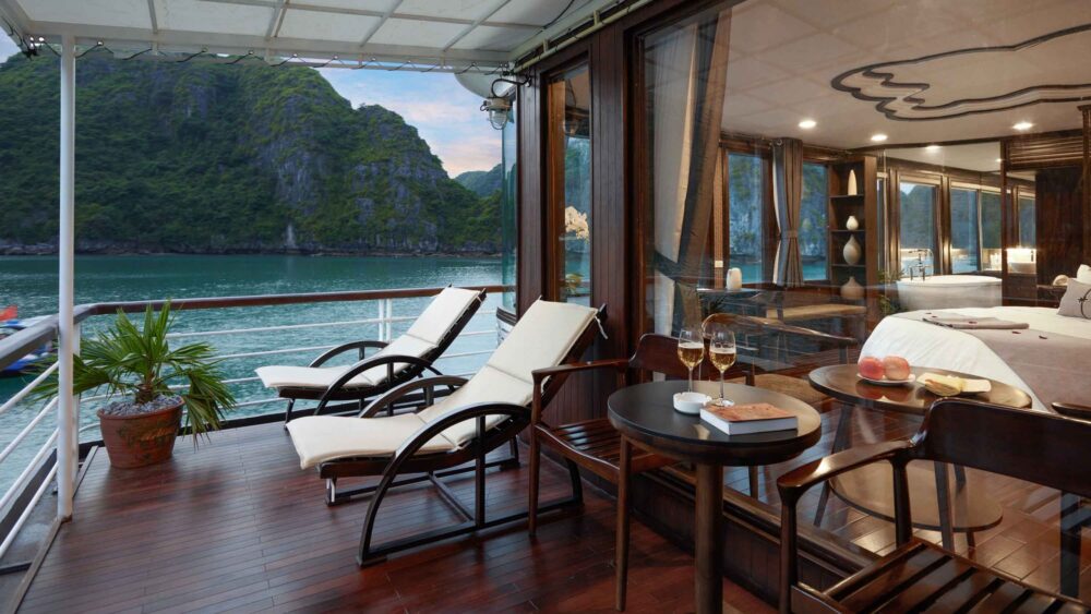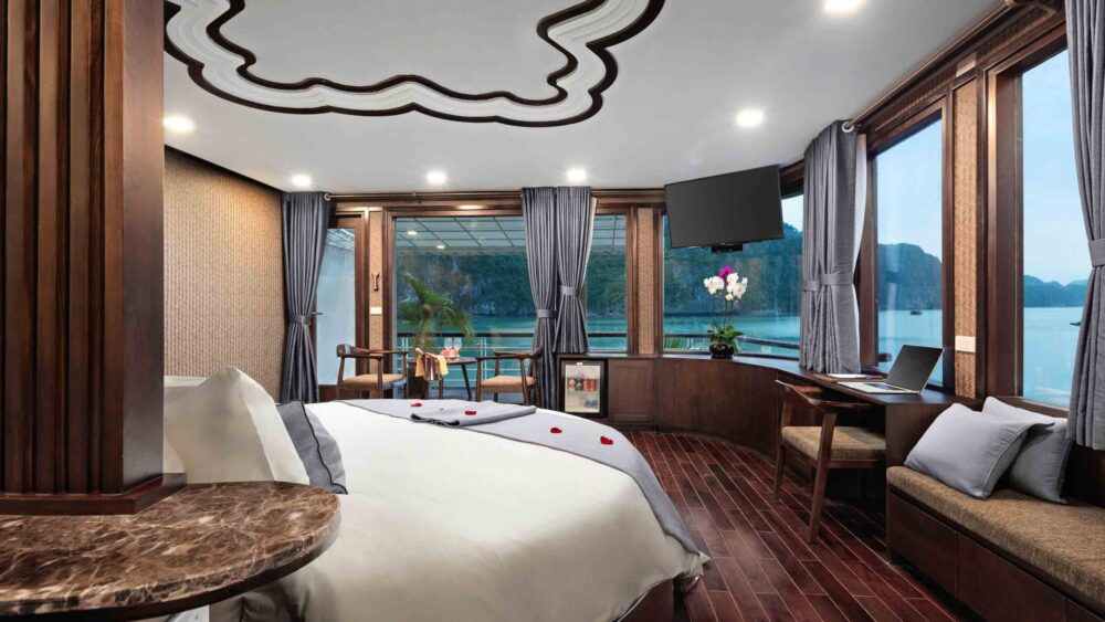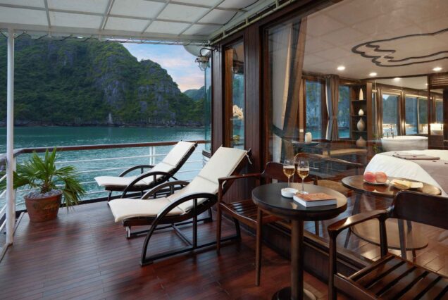 Launched in 2020, Orchid Classic Cruise is the most luxurious 5-star vessel in the Orchid fleet (the same award-winning company that operates Peony, Azalea, and Orchid Trendy cruises). It is widely regarded as one of the top luxury cruises in Halong Bay – Lan Ha Bay, consistently ranking in the Top 3 best 5-star cruises in the region on TripAdvisor and other platforms. With only 14 spacious suites (all with private balconies), it offers an intimate, high-end experience while exploring the less-crowded and more pristine Lan Ha Bay and Cat Ba archipelago.