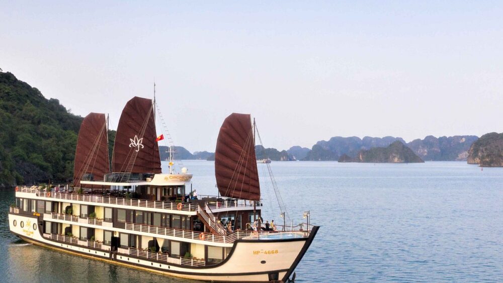 Launched in 2021, Orchid Trendy Cruise is the stylish, modern 5-star member of the acclaimed Orchid Cruises fleet (the same award-winning operator behind Orchid Classic, Peony, and Azalea). With a fresh, contemporary design that blends Scandinavian minimalism with subtle Indochine touches, it appeals to younger travelers, couples, and families who want luxury without the overly traditional vibe. Carrying just 20–24 spacious cabins (all with private balconies), it delivers an intimate yet vibrant experience while cruising the quieter, more pristine Lan Ha Bay and Cat Ba archipelago – consistently ranking in the Top 5 best 5-star cruises in the region on TripAdvisor and travel platforms.