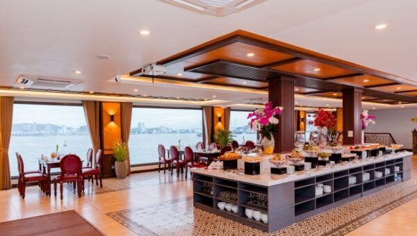 • 09:45 Enjoy a generous buffet brunch as the ship leisurely sails back toward Tuan Chau Marina, giving you one last chance to capture the bay’s timeless beauty.